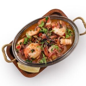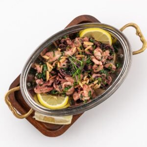 Open-face Kibbeh, stuffed with Codfish, Golden Raisins, nuts, and saffron.